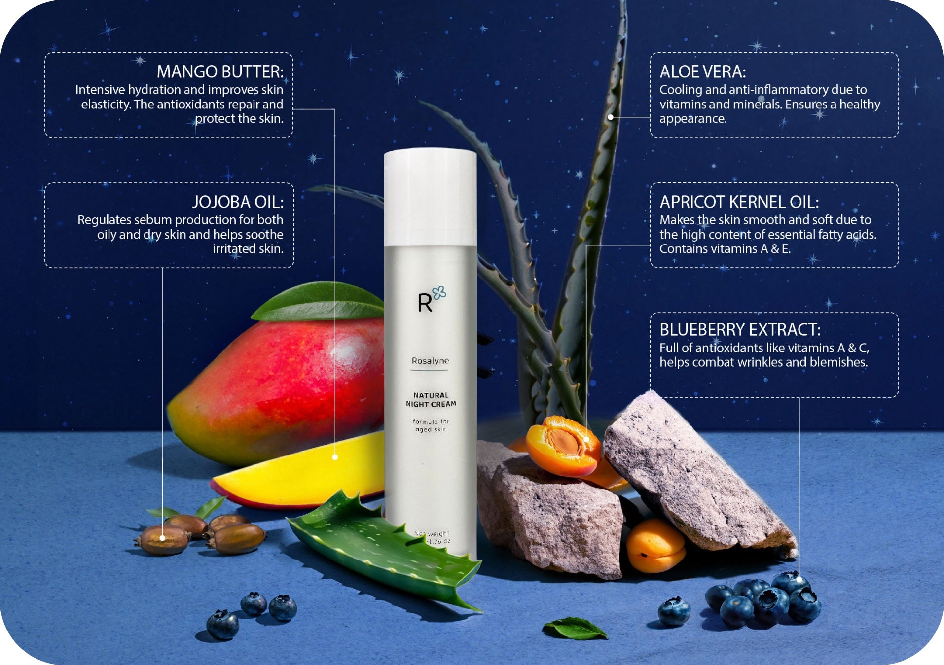 Rosalyne Night Cream combines the power of nature with modern skincare innovations. Our paraben- and sulfate-free formula is suitable for all skin types, including sensitive skin. The light, non-greasy feel ensures that your skin can breathe and naturally recover overnight.