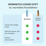 Der SkinMatch Cover Stift nimmt Ihnen dieses Dilemma ab. Die colour changing Formel passt sich automatisch Ihrem Hautton an – Sie müssen also nie wieder wählen. So haben Sie immer die perfekte Nuance und ein natürlich ebenmäßiges Ergebnis.