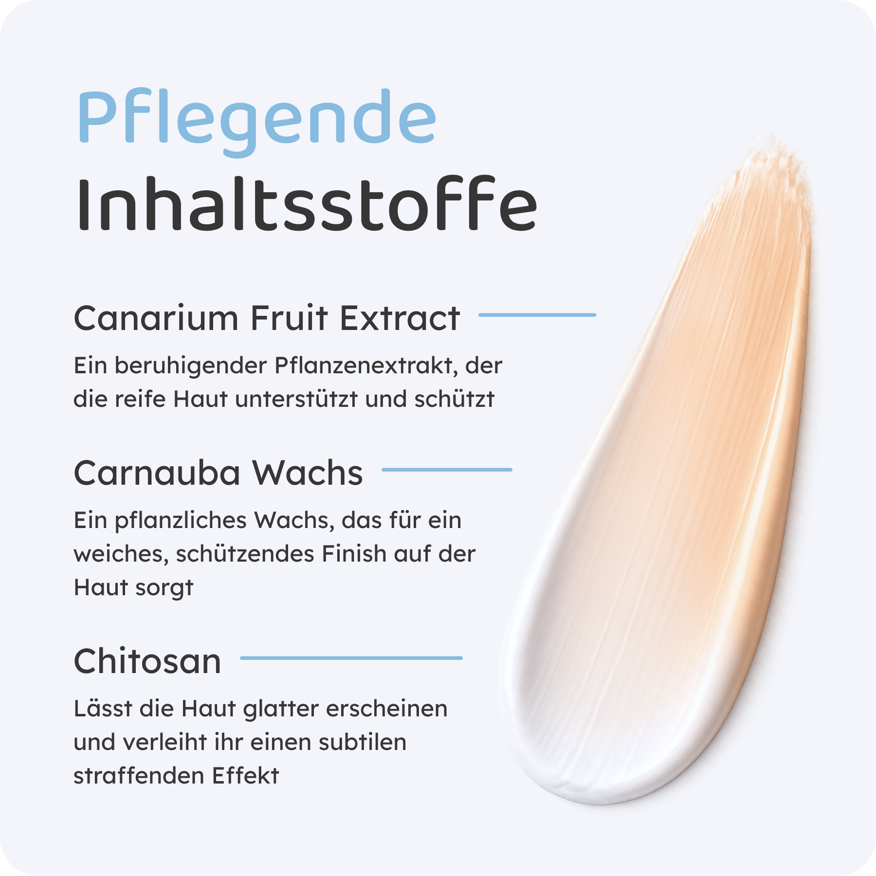 Die Formel ist mit nährenden Ölen und natürlichen Extrakten angereichert, die helfen, Feuchtigkeit zu speichern und die Elastizität der Haut zu unterstützen. Außerdem ist der Stift auch für empfindliche Haut geeignet: frei von Alkohol, Parfüm und Parabenen – und selbstverständlich tierversuchsfrei.